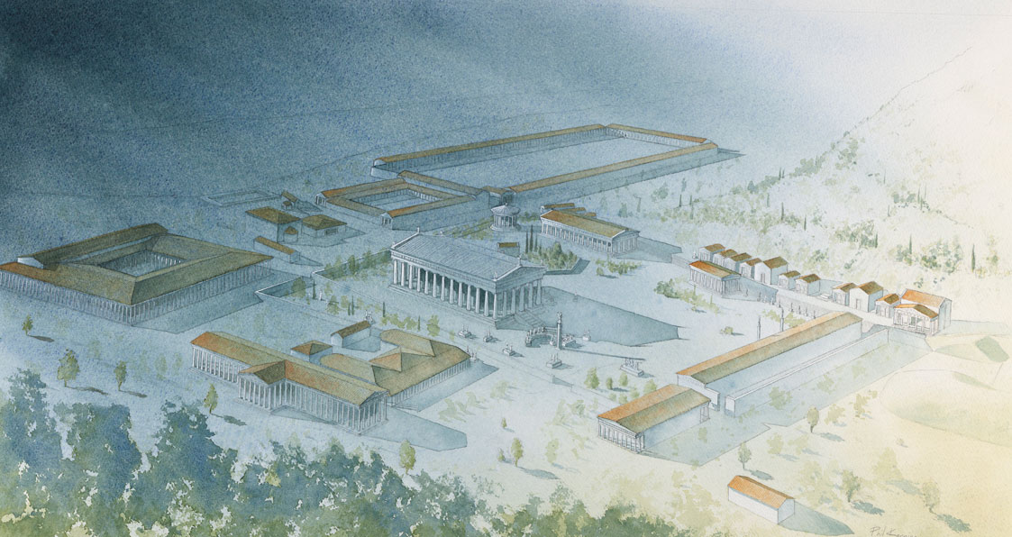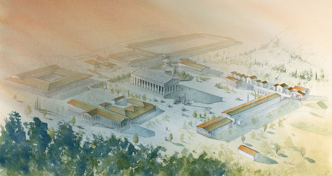 The Olympic Journey – A series of reconstruction illustrations showing the god Zeus his temple & the sanctuary at Olympia.